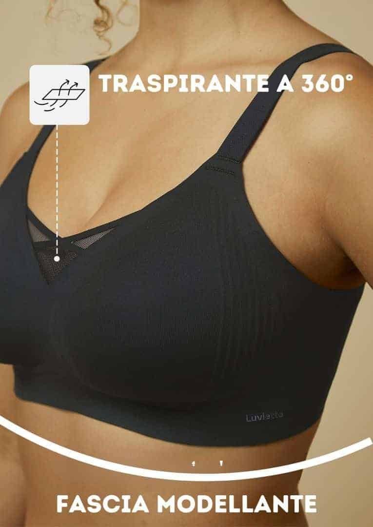 Grazie allo speciale tessuto 3D a compressione graduale favoriscono una migliore Silhouette eliminando gli Anti-Estetici Rotolini che si formano con i Comuni reggiseni