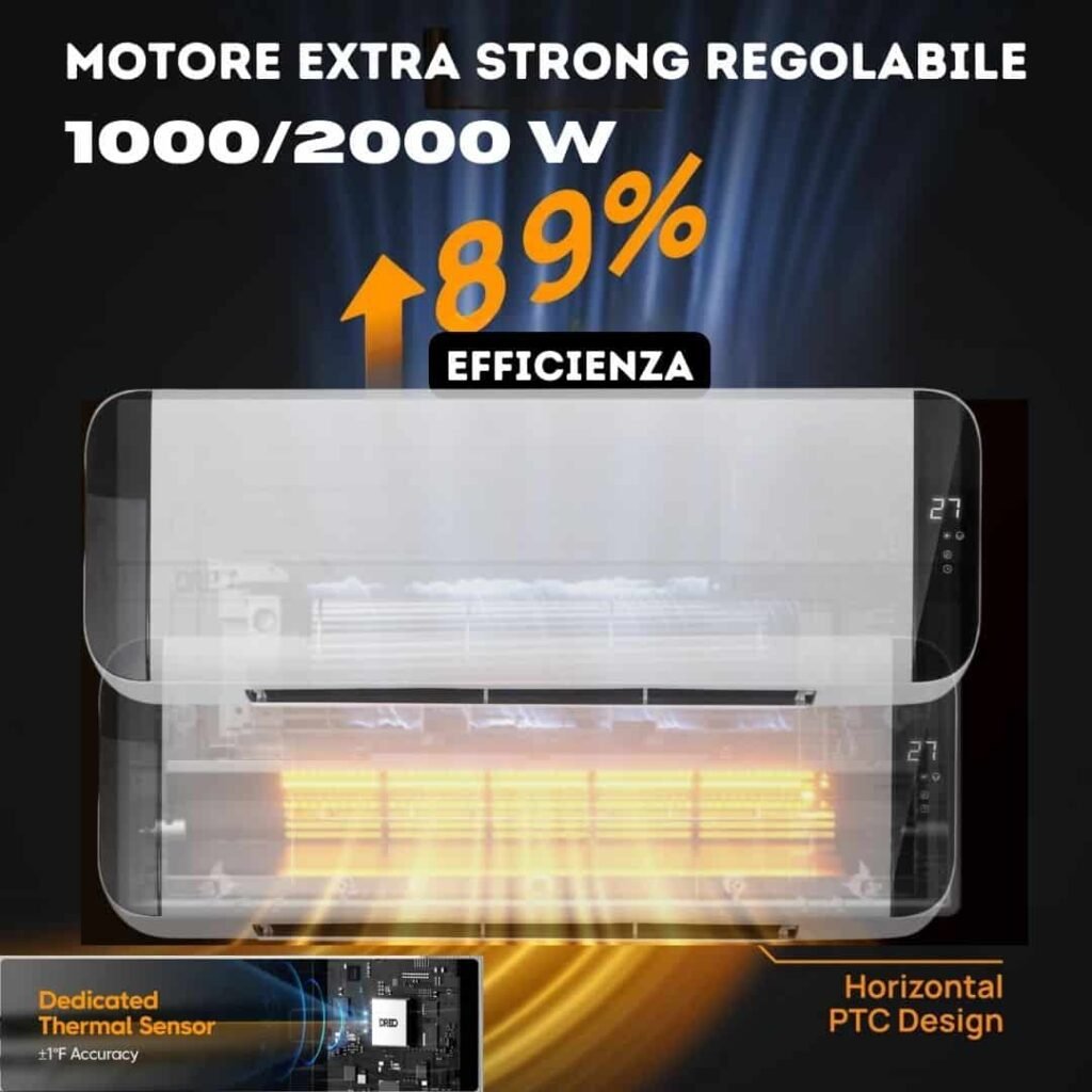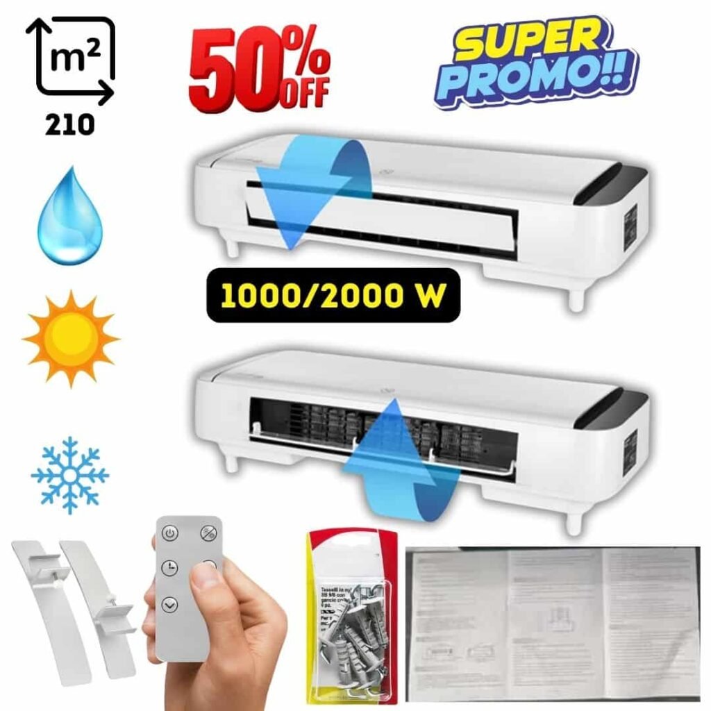 CLIMA PRO XZ67 Multifunzione Scalda/Raffredda/Deumidifica! Con Potenza regolabile 1000/2000w in Classe TRIPLA A per Riscaldare e Raffreddare oltre 210m²