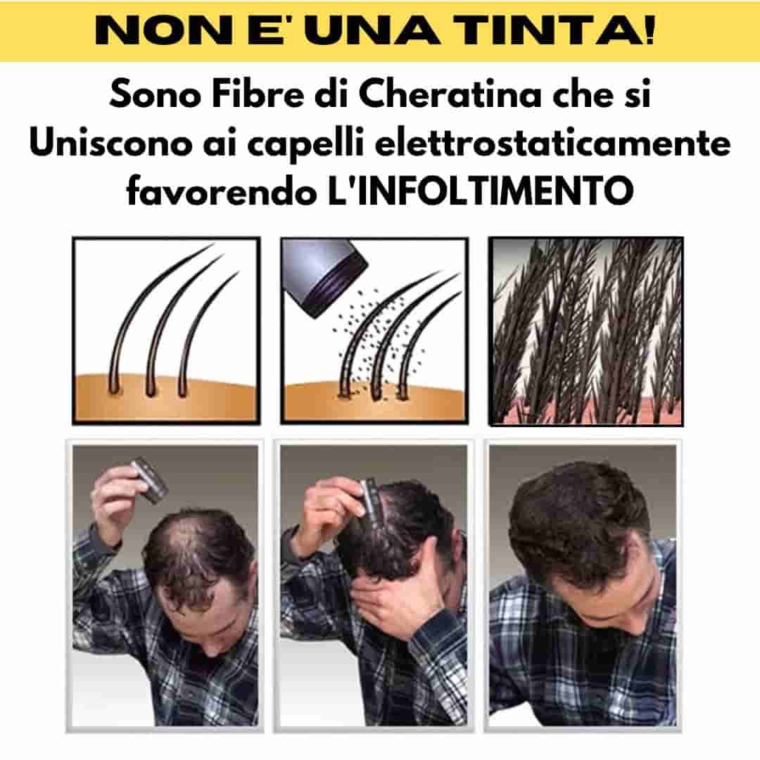 “Ho i problemi con i capelli, ho comprato questo prodotto e sono molto contenta! Si tiene alla testa finché non si lava capelli con shampo, non lascia il cuscino sporco. Da una voluminosità a capelli. ho notato che i capelli stanno crescendo anche dove applicato. Consiglio a tutti chi ha pochi capelli e vuole coprire. Buonissimo prodotto!”.