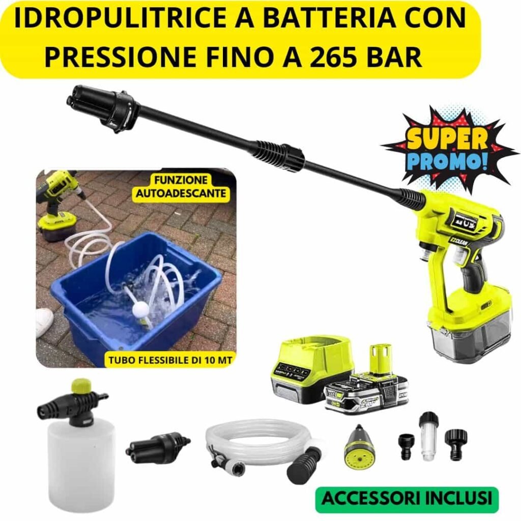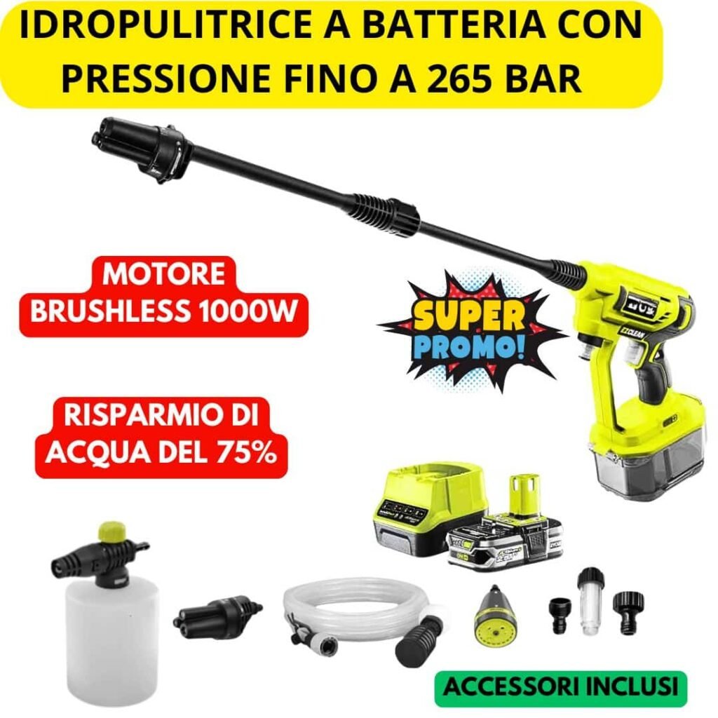 TurboClean ha la potenza che cercavi! Con il Motore Brushless da 1000W e una pressione fino a 265 bar, affronti ogni pulizia con facilità, da auto e moto a tetti, piscine, finestre e persino per annaffiare il giardino o Imbiancare Casa. Grazie ai 3 ugelli intercambiabili, avrai il getto perfetto per ogni esigenza e un risparmio d’acqua fino al 75%, Il design compatto e leggero la rende maneggevole riducendo del 55% la fatica e del 50% il tempo per ogni lavoro.