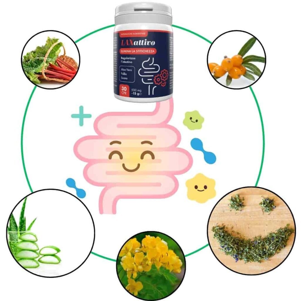 LAXattivo© è la scelta migliore per chi soffre di stitichezza, grazie alla sua formula naturale potente che combina solo ed esclusivamente ingredienti 100% naturali come: aloe vera, senna, psillio, malva, rabarbaro e frangula.