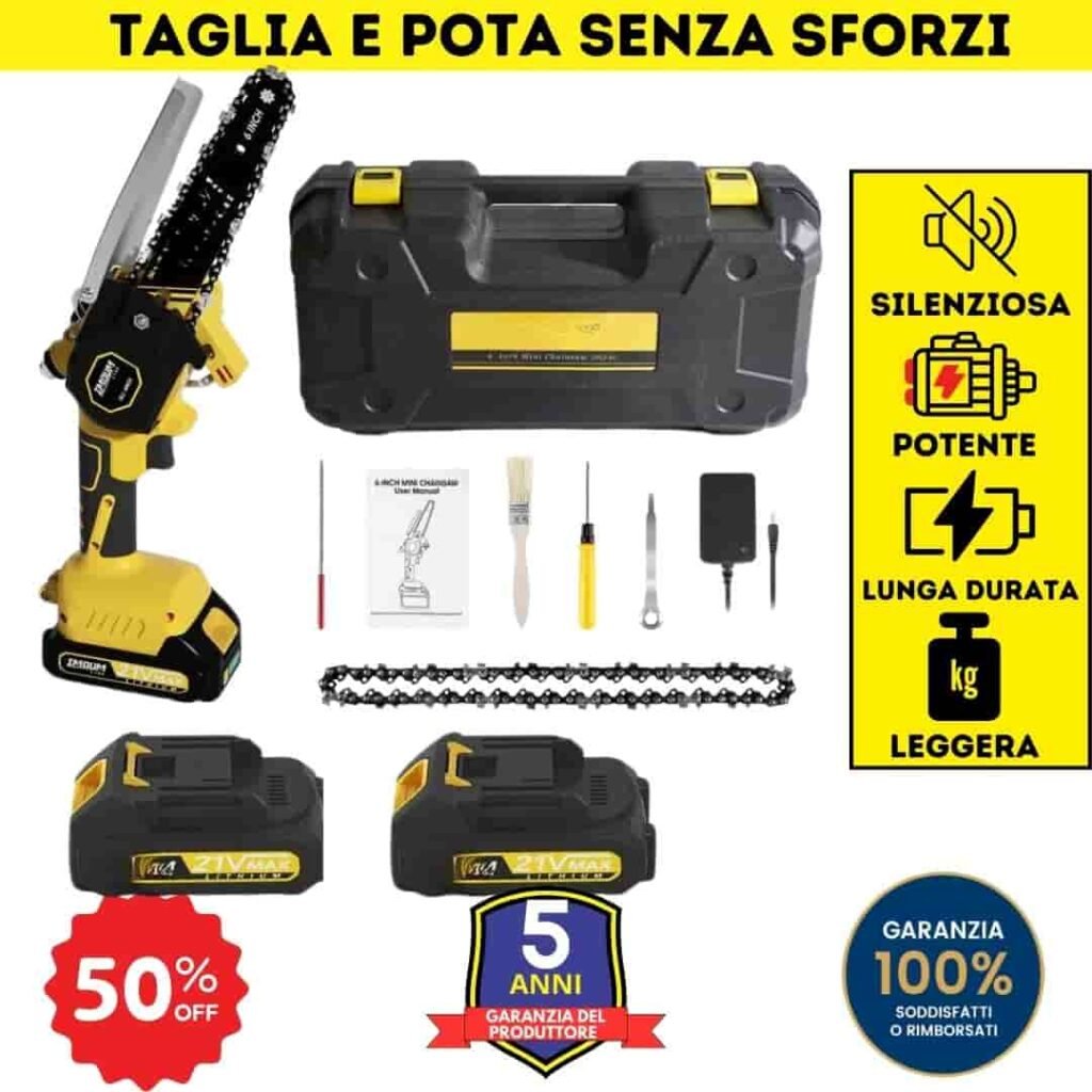 “Ottimo rapporto qualita-prezzo. Pensavo che riuscivo a tagliare solo rami piccoli invece devo dire che taglia bene anche rami grandi e tronchi. La batteria dura tanto e l’impugnatura è buona. Prodotto valido consiglio senza dubbio”