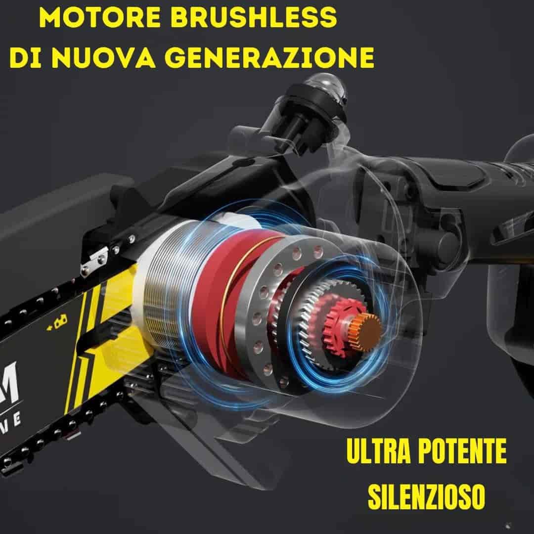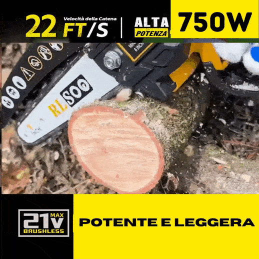 Grazie al suo potente Motore Brushless di Ultima Generazione è possibile tagliare un tronco con un diametro di 35 cm in pochi secondi. La catena di guida ha subito un profondo processo di indurimento per garantire un taglio regolare.
