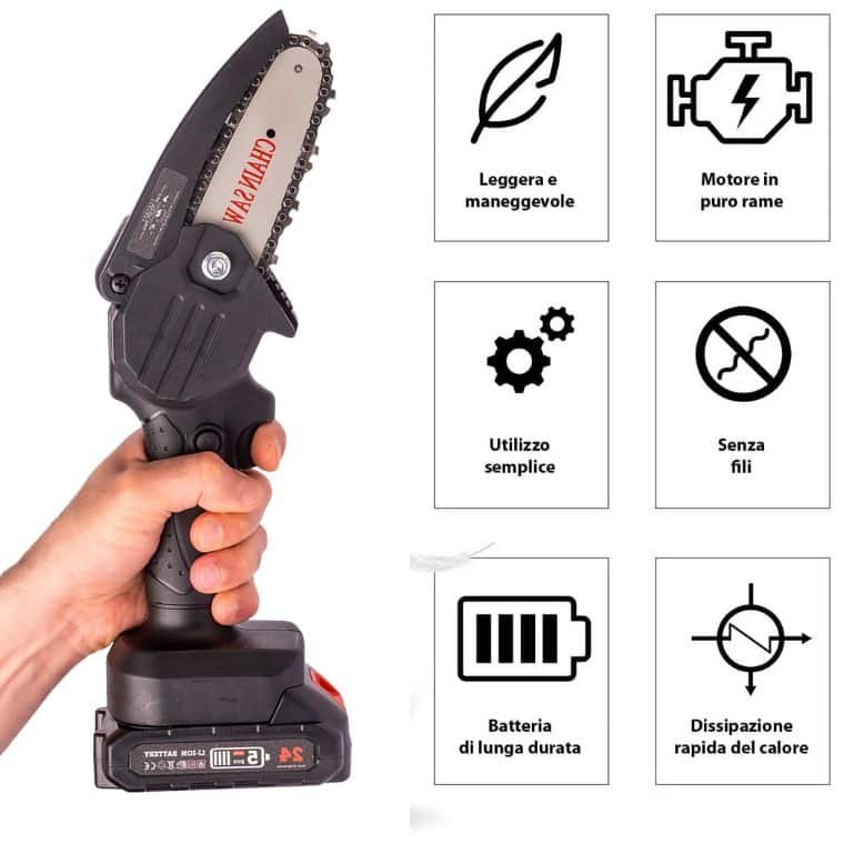 “Ottimo rapporto qualita-prezzo. Pensavo che riuscivo a tagliare solo rami piccoli invece devo dire che taglia bene anche rami grandi e tronchi. La batteria dura tanto e l’impugnatura è buona. Prodotto valido consiglio senza dubbio”
