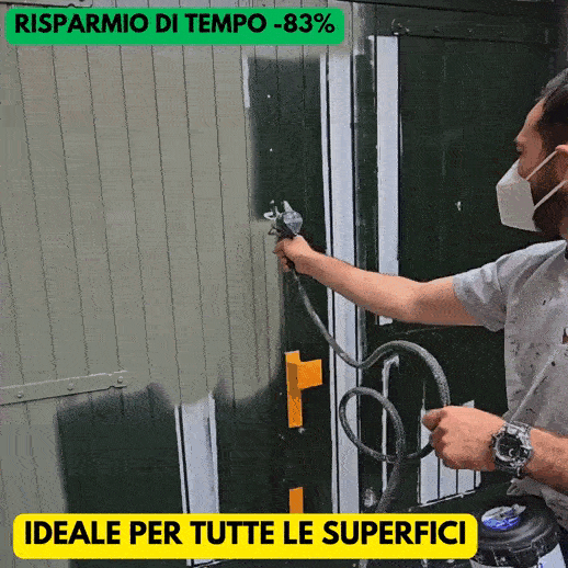 Con il Motore Brushless da 1800W PaintMaster è ideale per tutte le superfici: Pareti,Soffitti, Mobili,Cancelli, Ringhiere,Cartongesso, Plastica e Carrozzerie. Nebulizza in modo Uniforme, preciso e senza Sbavature. puoi Utilizzare tutti i tipi di vernice : Murali, smalti, Impregnanti, antiruggine e molte altre che scorrono facilmente . Grazie al design ultra–leggero di soli 800gr e al Sistema Anti-Vibrazione puoi lavorare per ore, Riduci la Fatica e lo Spreco del 77% e Risparmi l‘83% di Tempo.