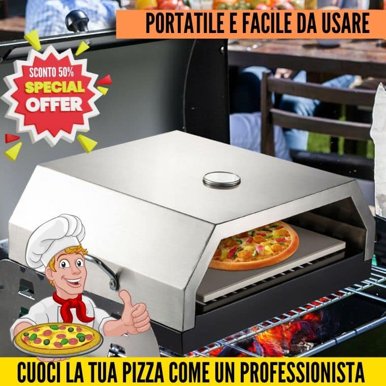 Grazie al Nuovo Forno PORTATILE che cuoce in modo Professionale Pizza, Focacce, Pesce e Carne in poco tempo Senza consumare Gas