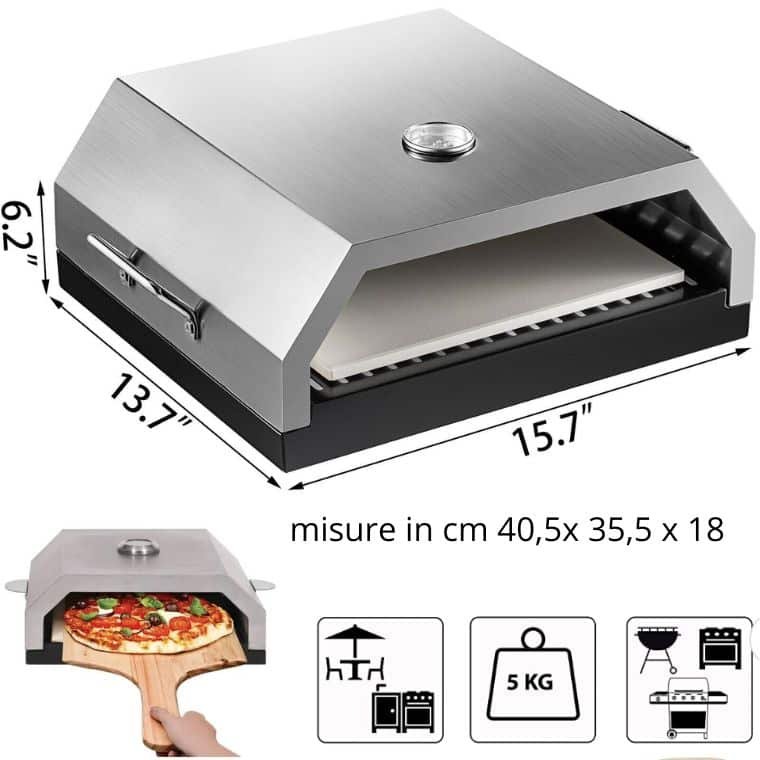 “Ottimo in tutto, risparmio di soldi rispetto ad altri forni. Io lo utilizzo sul mio baebecue a gas ma lo porto anche in montagna ed è perfetto! Buona la cottura della pizza e anche in poco tempo. Consigliato per chiunque voglia godersi il suo tempo all’aperto con stile e comfort!”
