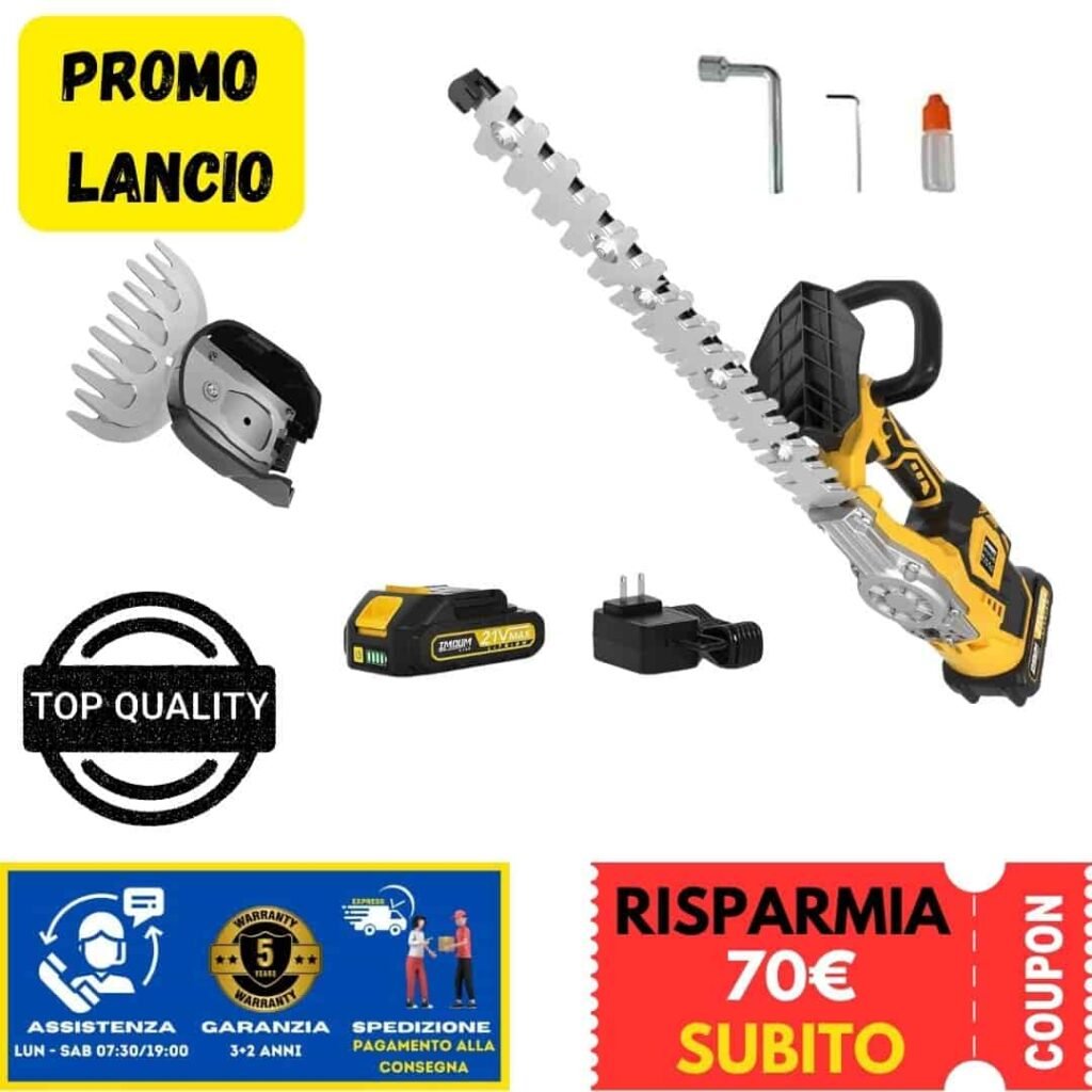 “Confezione impeccabile, accessori completi, e prestazioni straordinarie. Questo tagliasiepi elettrica ha superato ogni aspettativa: leggera, maneggevole, e con batteria resistente per oltre 4 ore di utilizzo continuo. La versatilità delle lame e la facilità d’uso la rendono un acquisto sorprendentemente soddisfacente.Ottimamente soddisfatto…”